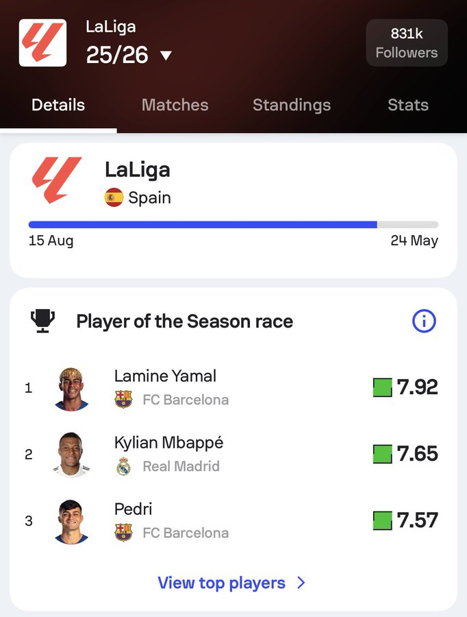 虎扑04月12日讯 Sofascore统计了亚马尔本赛季在西甲联赛的表现: